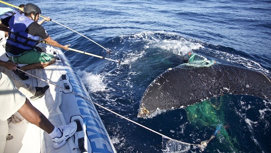 Las autoridades mexicanas rescataron a una ballena jorobada atrapada en una red de pesca a unos 3.700 kilómetros al suroeste de Cabo San Lucas, en el noroccidental estado de Baja California Sur, luego de tres horas de maniobras.