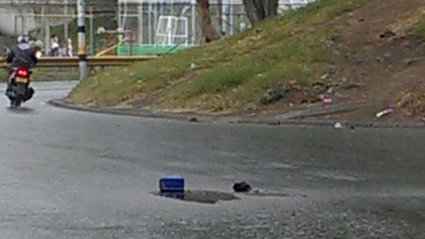 Según testigos el hecho casi genera un accidente, pues un motociclista casi se cae al pasar por ese sector.