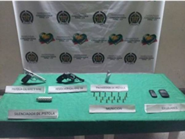 Se les incautó un arma de fuego tipo Pistola 9 mm, marca Luger Parabellum M-90, con un proveedor y 11 cartuchos calibre 9 MM, un supresor de sonido (silenciador) para la pistola y un revolver marca llama modelo Cassidy 38SPL, origen indumil, calibre 38, con 6 cartuchos calibre 38.