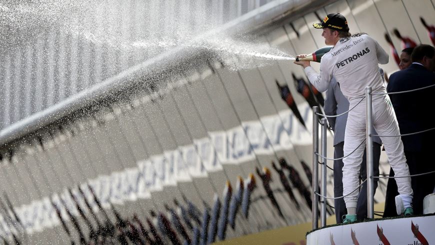 El piloto alemán de Mercedes Nico Rosberg celebra su victoria en el Gran Premio de España de Fórmula Uno que se ha disputado en el Circuito de Catalunya en Montmeló (Barcelona). EFE