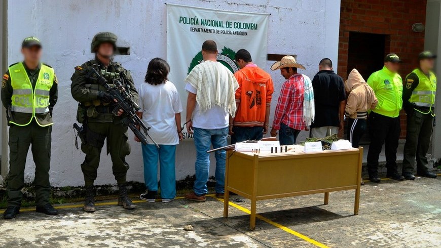 Los capturados fueron dejados a disposición de la Fiscalía por los delitos de tráfico y porte de estupefacientes y tráfico y porte de armas de fuego.