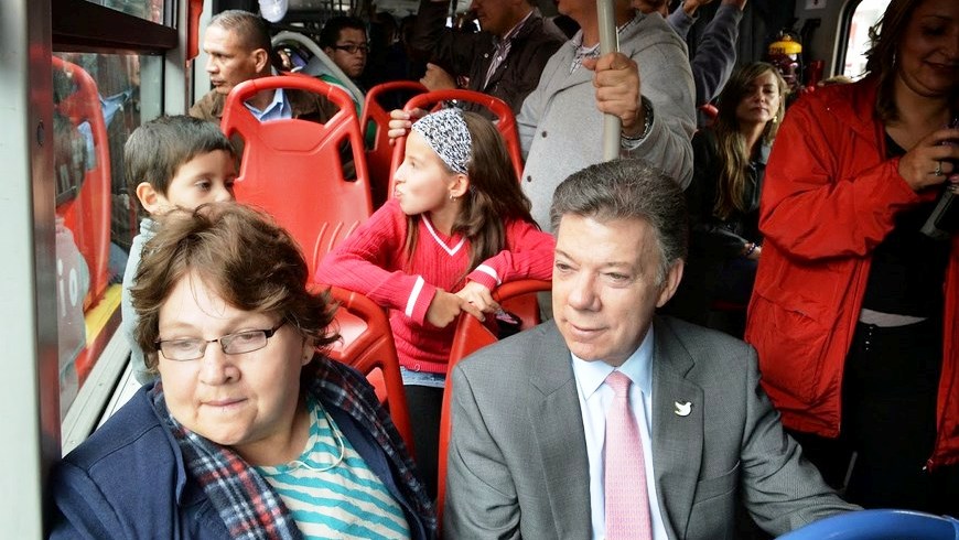 Minuto30.com-. En Transmilenio llegó el presidente Juan Manuel Santos al parque de Lourdes, nororiente de Bogotá, donde a esta hora realiza el lanzamiento del ‘Plan Navidad 2014’. En su recorrido interactuó con los usuarios.