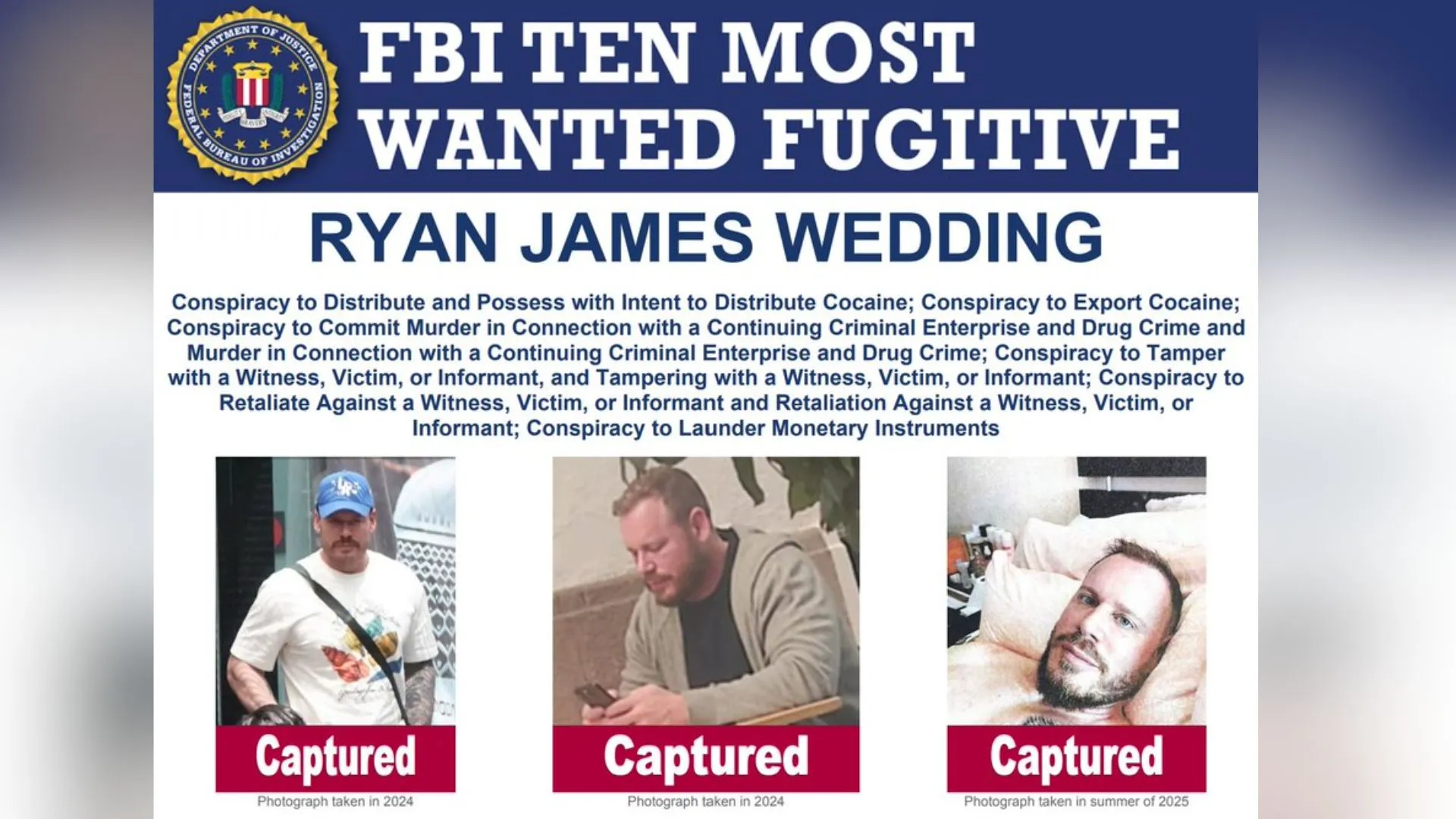 Wedding, de 44 años, quien también se identificaba con el alias de ‘Jesse King’, era considerado uno de los fugitivos de mayor prioridad para las autoridades estadounidenses. Su nombre figuraba en la lista de los diez más buscados del FBI, organismo que ofrecía una recompensa de hasta 15 millones de dólares por información que permitiera dar con su paradero.