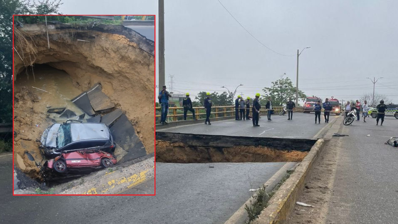 En las imágenes se ve a dos automóviles y una motocicleta al fondo del cráter generado al parecer por la socavación de agua, mientras que algunas personas intentan rescatar a los heridos. Posteriormente, llegan los organismos de rescate y adelantan la extracción de los afectados.