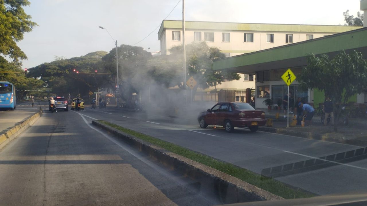 El incidente ocurrió a las 5:00 de la tarde en la dirección Calle 5 No. 62 – 82, afectando un automóvil particular en el habitáculo del motor.