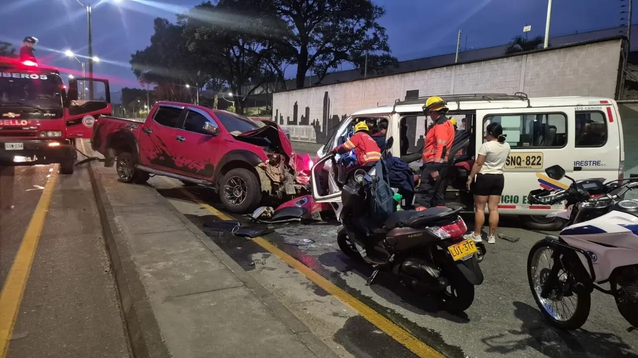 El accidente ocurrió justo frente a los talleres del Metro de Medellín, en jurisdicción de Bello. El impacto fue de tal magnitud que uno de los vehículos involucrados, una camioneta de transporte escolar, sufrió graves daños. Por fortuna, en el momento del choque no se movilizaban estudiantes en el vehículo de servicio especial.