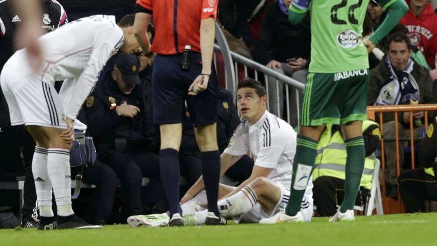 El centrocampista internacional colombiano se retiró lesionado en su gemelo derecho del encuentro liguero en el estadio Santiago Bernabéu y tras un día de reposo, se someterá este lunes a un estudio radiológico por los doctores madridistas, que confirmará el alcance exacto de la lesión.