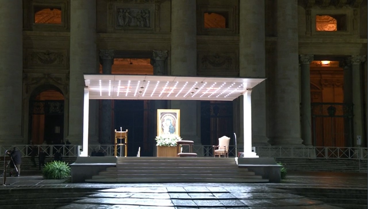 “Recogiendo el sentir del Pueblo de Dios” los cardenales residentes en Roma, colaboradores de la Curia Romana, y de la diócesis de Roma rezan el Rosario en la Plaza de San Pedro a las 9:00pm (hora de Roma) por la salud del Papa Francisco.
