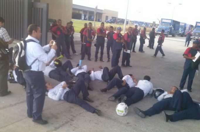 Paro de trabajadores en Megaplanta de Postobon Malambo por masacre laboral. Imagen tomada de twitter @sintraposal