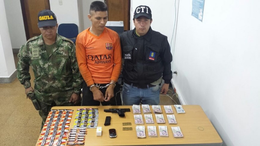 El operativo para dar con el paradero de alias “Sotelo” se realizó en la vereda Tarro Pintao del Corregimiento de San Diego, jurisdicción del municipio de Samaná, en límites de los departamentos de Caldas y Antioquia, al momento de la captura el hombre se movilizaba en un camión, en el cual eran transportados 24 millones 750 mil pesos en efectivo, además llevaba un arma corta, un proveedor, 20 cartuchos, y 50 baterías. Material que al parecer iba a ser utilizado para cometer actos delictivos.