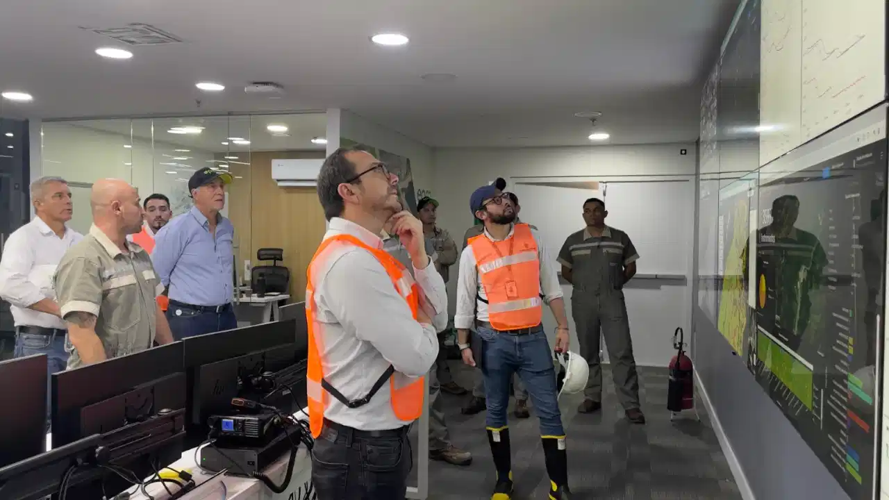 Acompañado por el gerente general de EPM, John Maya Salazar, el superintendente conoció de primera mano el funcionamiento del Centro de Monitoreo Técnico, donde se vigilan en tiempo real los indicadores de la obra.