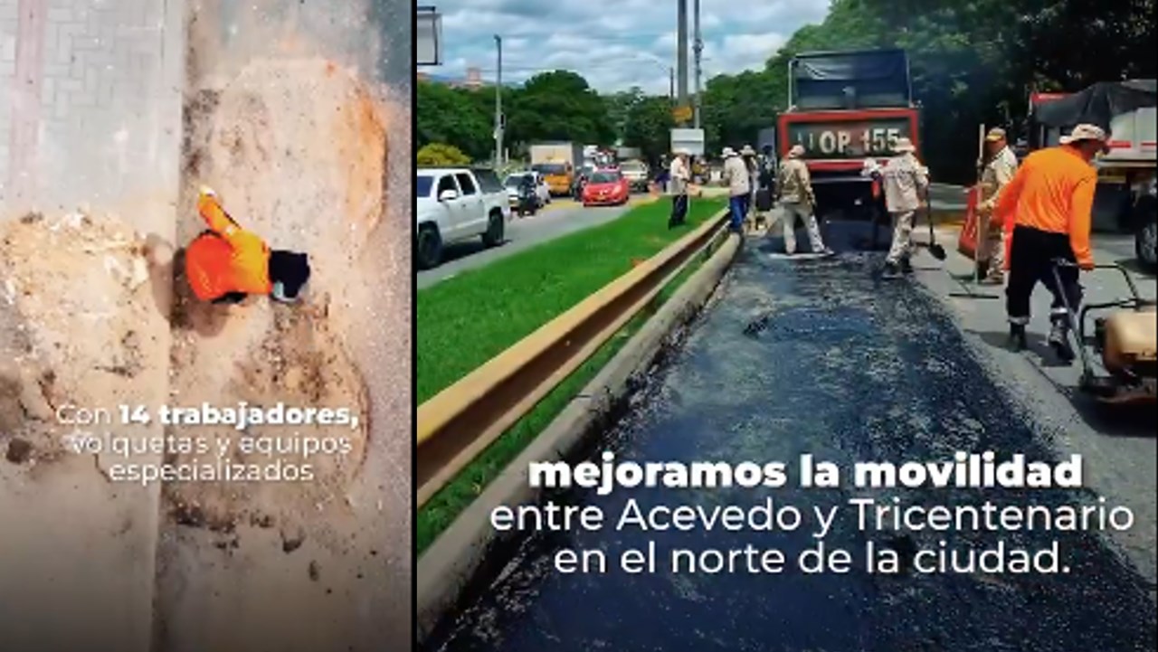 “Tapamos 18 huecos entre Acevedo y Tricentenario. ️⚠️ ¡Estamos mejorando la malla vial! ✅” informa la Alcaldía de Medellín, y deja en claro que esta intervención se hizo en solo 159 metros cuadrados, en la comuna 5, noroccidente de Medellín.
