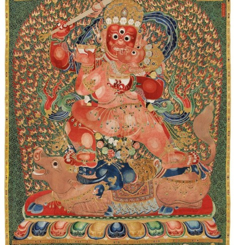 Esta pieza de arte, denominada “thangka”, es un tipo de tapiz o bandera budista elaborada en seda que suele colgarse en los monasterios o altares budistas.