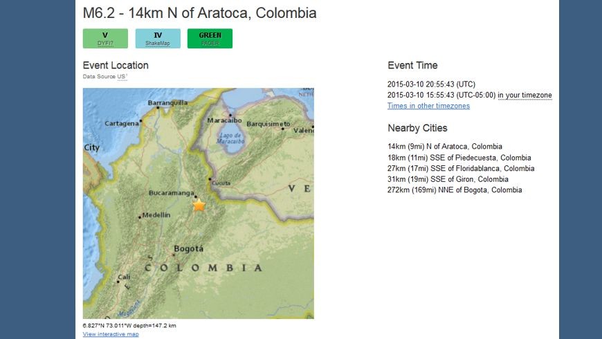 De acuerdo con información entregada por Servicios Sísmicos de Estados Unidos, el movimiento telúrico de 6.6 grados en la escala de Richter tuvo como epicentro el municipio de Aratoca en Santander.
