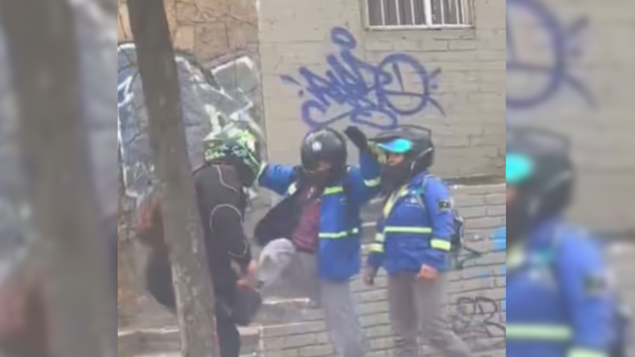 En redes sociales se compartió el momento en que trabajadores del Transmilenio se involucraron en una pelea con un transeúnte en Bogotá.