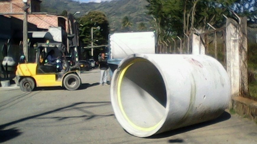 Minuto30.com-. Tres tubos de cemento de propiedad de la empresa Titán, cayeron sobre dos viviendas y dos carros en la vereda Cando del municipio de Copacabana.