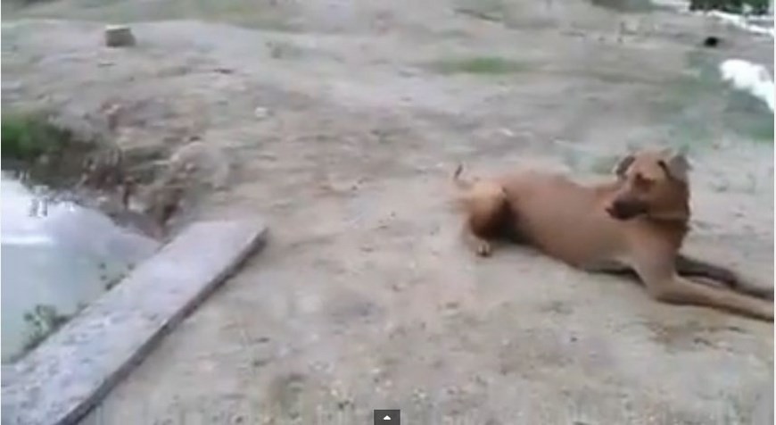 En un descuido del can, el hombre decide sumergirse en el agua hasta quedar flotando completamente, haciéndose el ahogado. Su mascota al percatarse de la situación se lanza al rescate, hasta que logra sacarlo y conducirlo hasta la orilla.