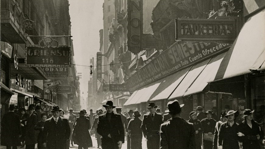 Fotografía cedida hoy, jueves 14 de mayo de 2015, del fotógrafo argentino Horacio Coppola titulada “Calle Florida” (1936), una de las obras que aparecen en el Museo de Arte Moderno de Nueva York (MoMA), en la exposición “De la Bauhaus a Buenos Aires”, donde se persigue a Coppola y a su esposa, la alemana Grete Stern. EFE