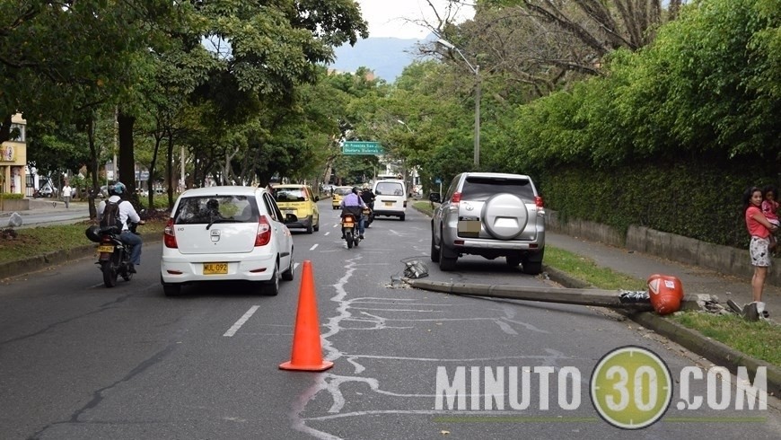 Ocurrió la tarde de este lunes 26 de enero. Según testigos, una mujer conducía una Toyota Prado por la Circular 1 con la carrera 70, en inmediaciones de la UPB, cuando se le atravesó un motociclista. Al parecer, la mujer, asustada al creer que la iban a robar, perdió el control del vehículo y se chocó contra un poste al que tiró al suelo.