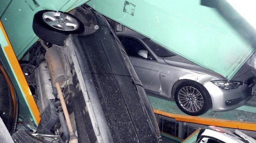 En Taipei se registró una avería en una torre de aparcamientos debido al terremoto y varios automóviles quedaron atrapados.