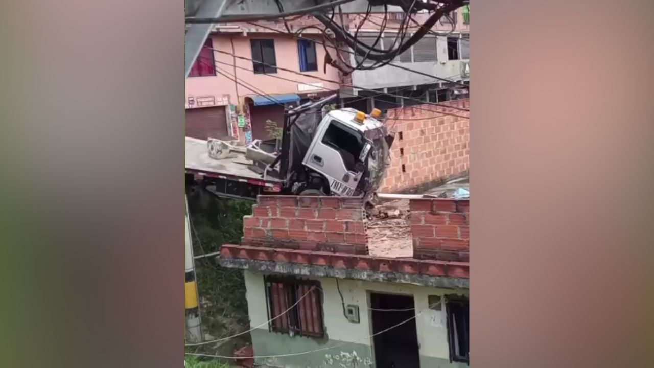 Presuntamente el vehículo habría colisionado contra varias viviendas por fallas mecánicas, entre ellas, logró caer sobre la terraza de una de las viviendas.