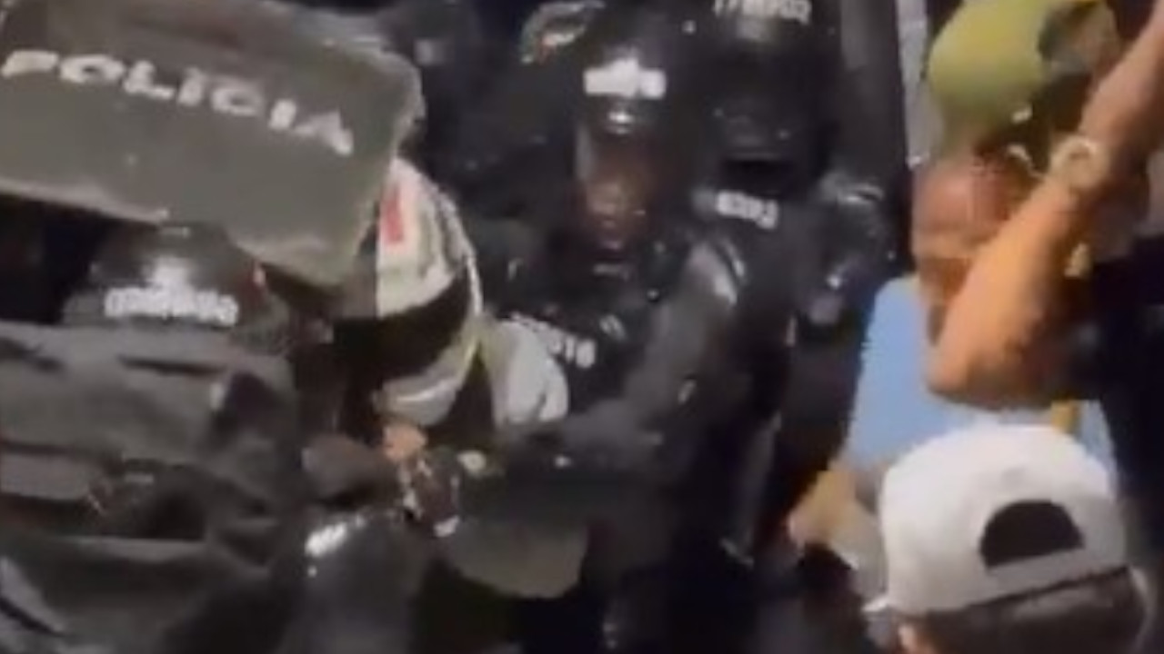 Las reacciones no se hicieron esperar y en un video que ha sido compartido múltiples veces en redes sociales, quedó registrado el momento en el que la pareja salía protegida por los uniformados. Aún así, la comunidad intentó agredir al hombre con palos y piedras mientras lo abucheaban.