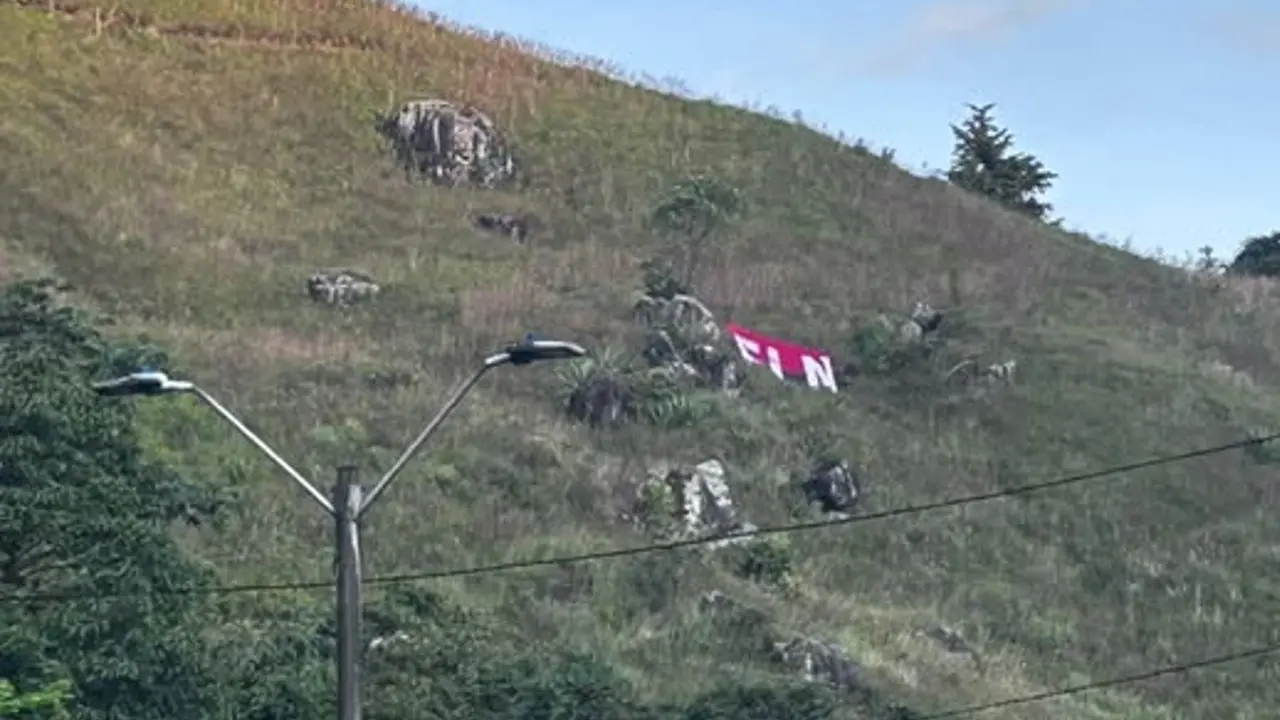 El sector en el que se encuetra una bandera del ELN y la alerta por posibles explosivos es entre el Peaje y el Alto de La Virgen, en el Kilómetro 08+700.