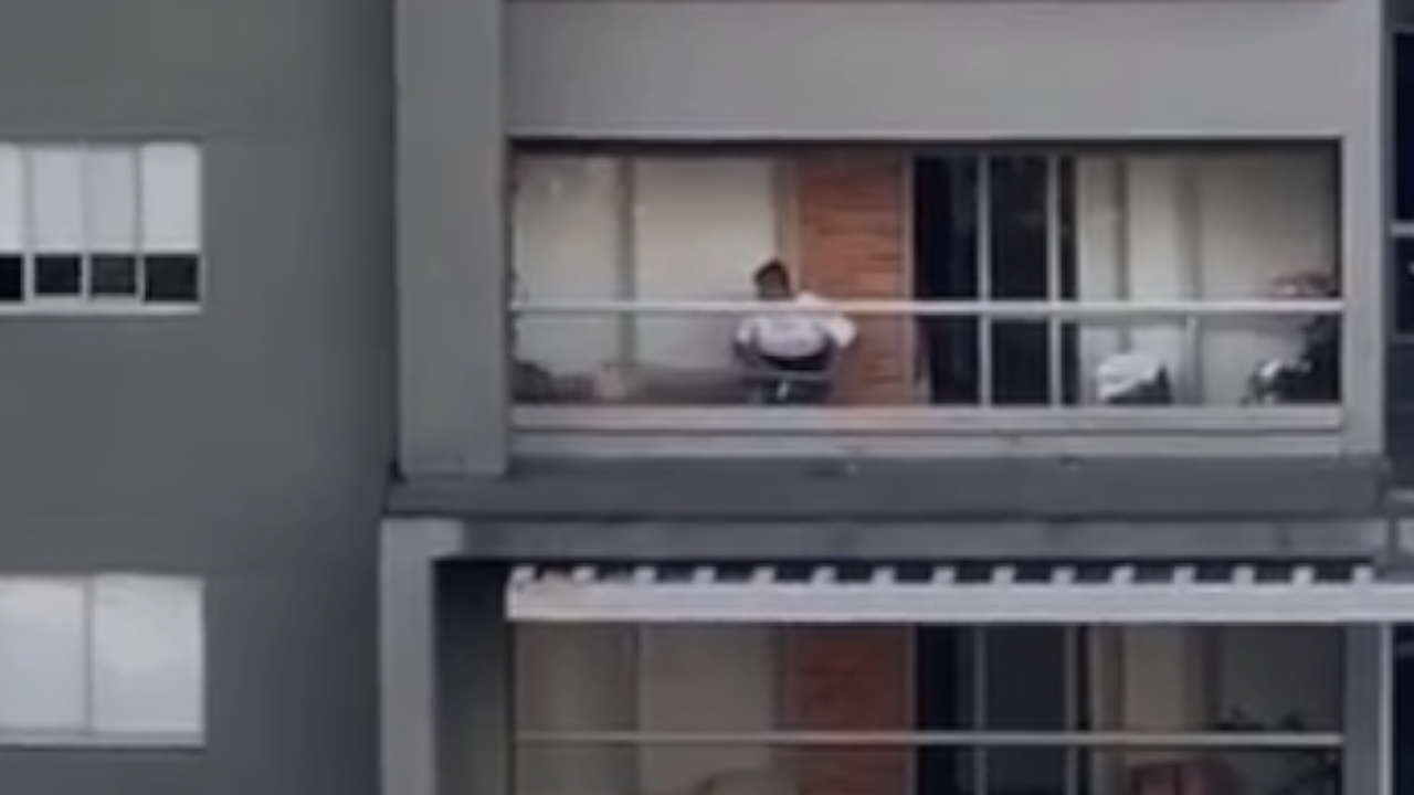 En el video se puede observar a un hombre pateando en repetidas ocasiones a un perro aparentemente de raza Husky Siberiano en un balcón.