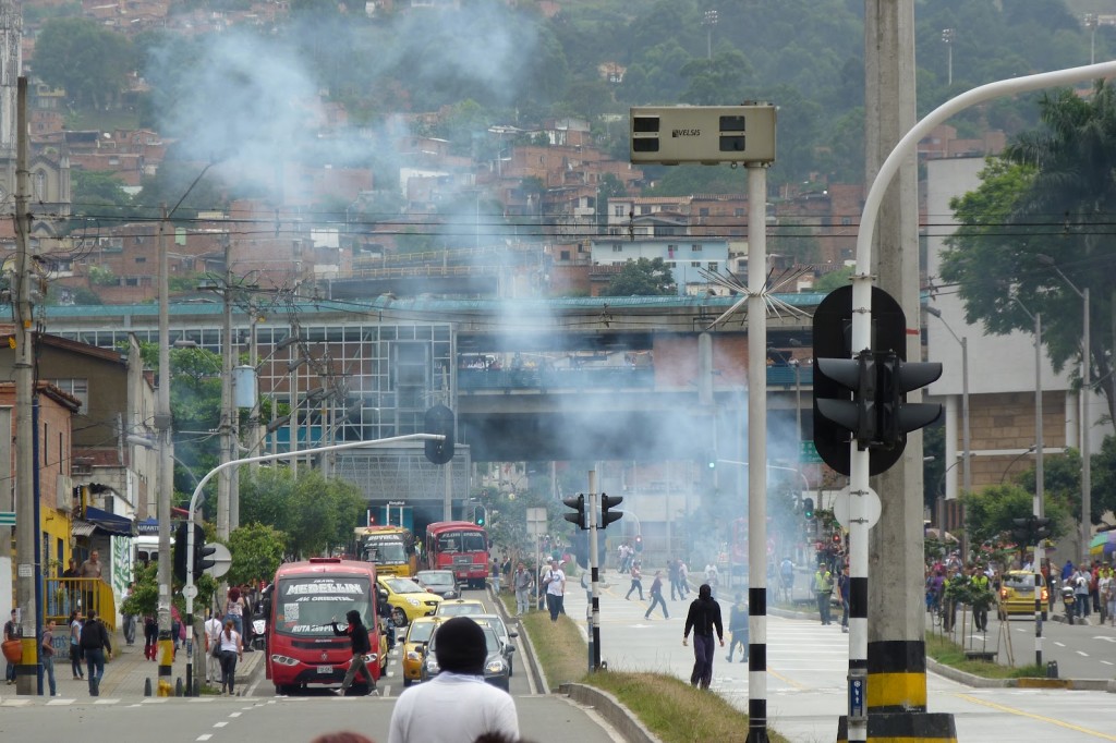 Minuto30.com .- La tarde de hoy, 19 de octubre, se registraron protestas en la Universidad de Antioquia, por lo que fue necesario cerrar las vías. Encapuchados ocasionan disturbios en el Alma Mater que fueron controlados por el ESMAD.