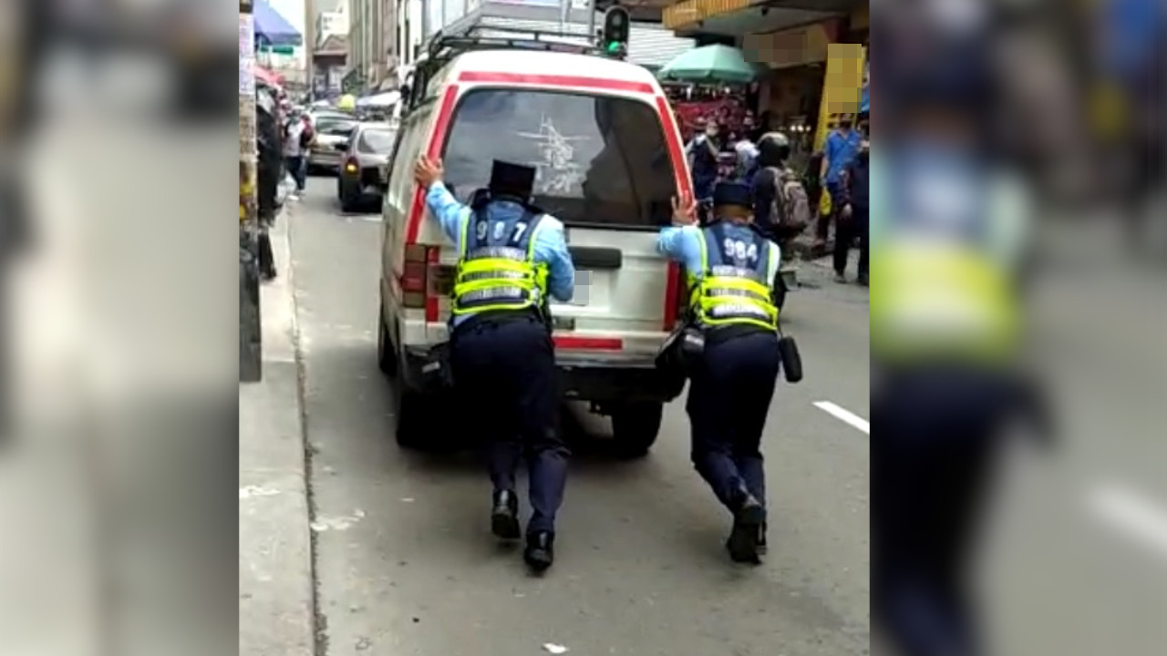 El hecho se registró cerca a Ayacucho. Allí los dos agentes, se les ve empujando un vehículo que al parecer, tenía dificultades para arrancar; un ciudadano que graba esta noble acción lanzó la frase: “gente que le pone el alma”.
