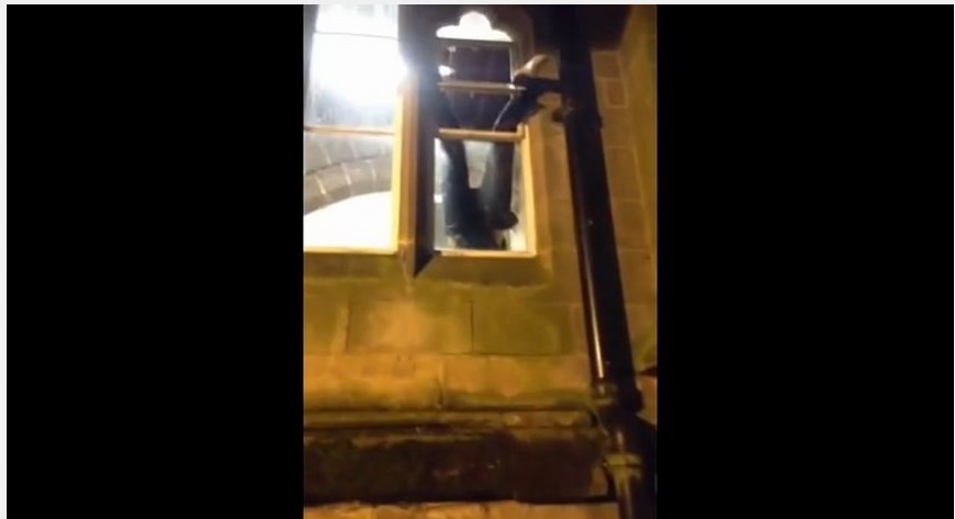 En video quedó registrado el “embarazoso” momento que pasó un asaltante que intentaba ingresar por la ventana de una habitación en el campus de la Universidad de Nottingham Trent (Inglaterra).
