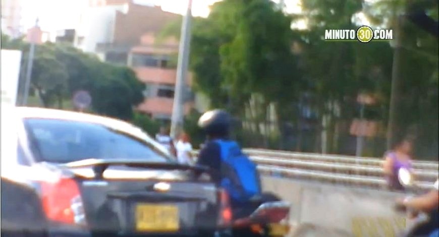 En el video se observa a varios motociclistas circular por el sector de la avenida 33 sobre el puente del río, aprovechando la congestión vehicular, los hombres se cercioran de la no presencia de las autoridades y proceden a aproximarse a un automóvil para interceptar al conductor con el fin de hurtar elementos de valor.