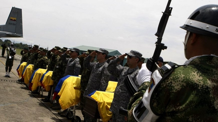 Tan lamentable como impactante, el ataque armado atribuido por el Ejército a la Columna Móvil Miller Perdomo de las Farc, deja las cruentas imágenes de una guerra que lejos de terminar se recrudece en los puntos más alejados de nuestra geografía. Lejos de las cámaras de televisión, en terrenos a veces inhóspitos, los militares de este país portan la bandera que identifica a millones de colombianos, bajo el precepto de Dios y Patria, ellos ponen a disposición su vida a cambio de una patria mejor, misma patria que los llora y condena con vehemencia este vil acto. PAZ EN SUS TUMBAS.