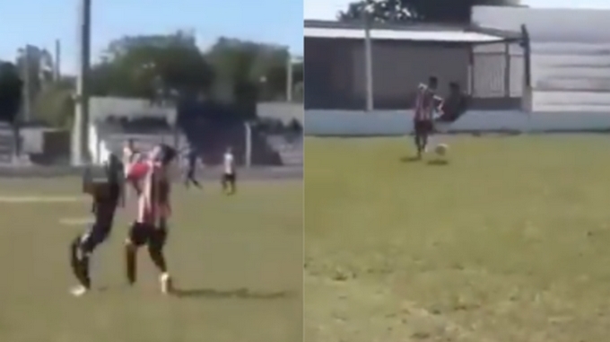 Una falta insólita ocurrió durante el partido entre el Deportivo Argentino y Atlético Ticino, en el torneo de reservas del fútbol argentino, cuando un defensa definitivamente se olvidó del balón y le entró al delantero con una patada terrible.
