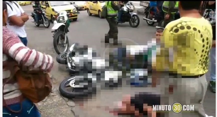 En la carrera 65 con calle Colombia, sector Carlos E Restrepo, un motociclista que, al parecer, habría ignorado una señal semafórica, se llevó por delante a un peatón.