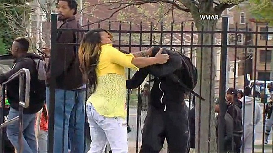 La foto de la semana, el fenómeno viral del momento. Ocurrió en Baltimore, durante las protestas tras la muerte del joven afroamericano Freddie Gray, durante los enfrentamientos entre la policía y manifestantes, una mujer se percató a través de la señal de televisión que su hijo estaba en la turba que tiraba piedras a la fuerza pública y decidió traerlo a casa.