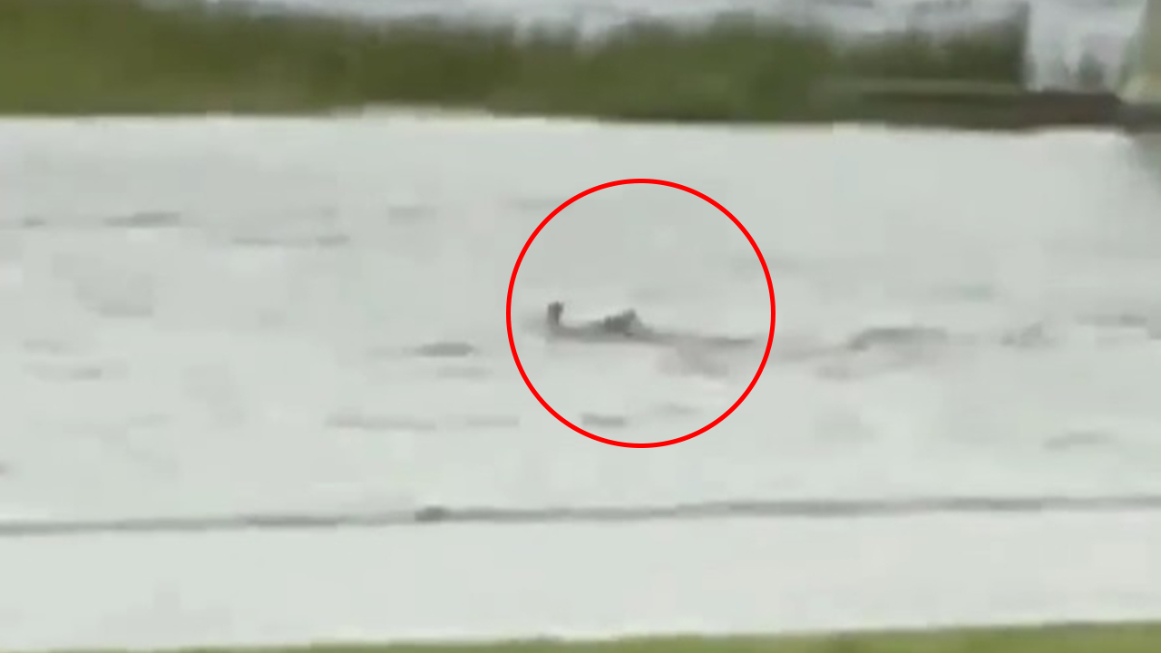 Fue el caso de un tiburón, captado nadando por una vía inundada de la costa de Florida, tras el paso de la tormenta.