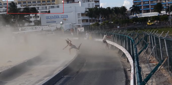 Los menos arriesgados, se paran en la orilla del mar, que como consecuencia de la caída, los lleva al agua, pero los otros, se toman de las rejas que delimitan con el aeropuerto e intentan aferrarse a ellas.