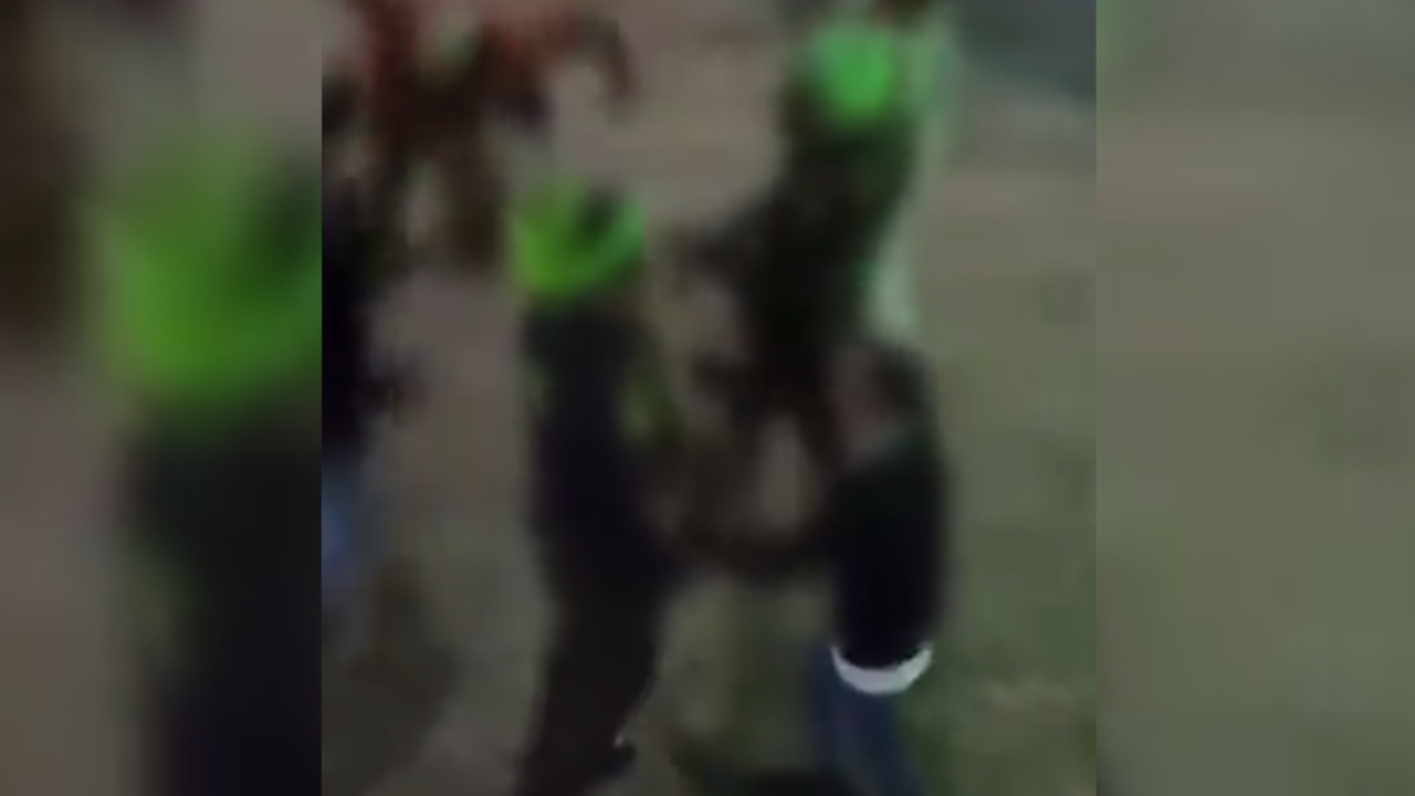En el video se puede observar la violenta pelea entre masculinos que tomaron botellas para agredir.