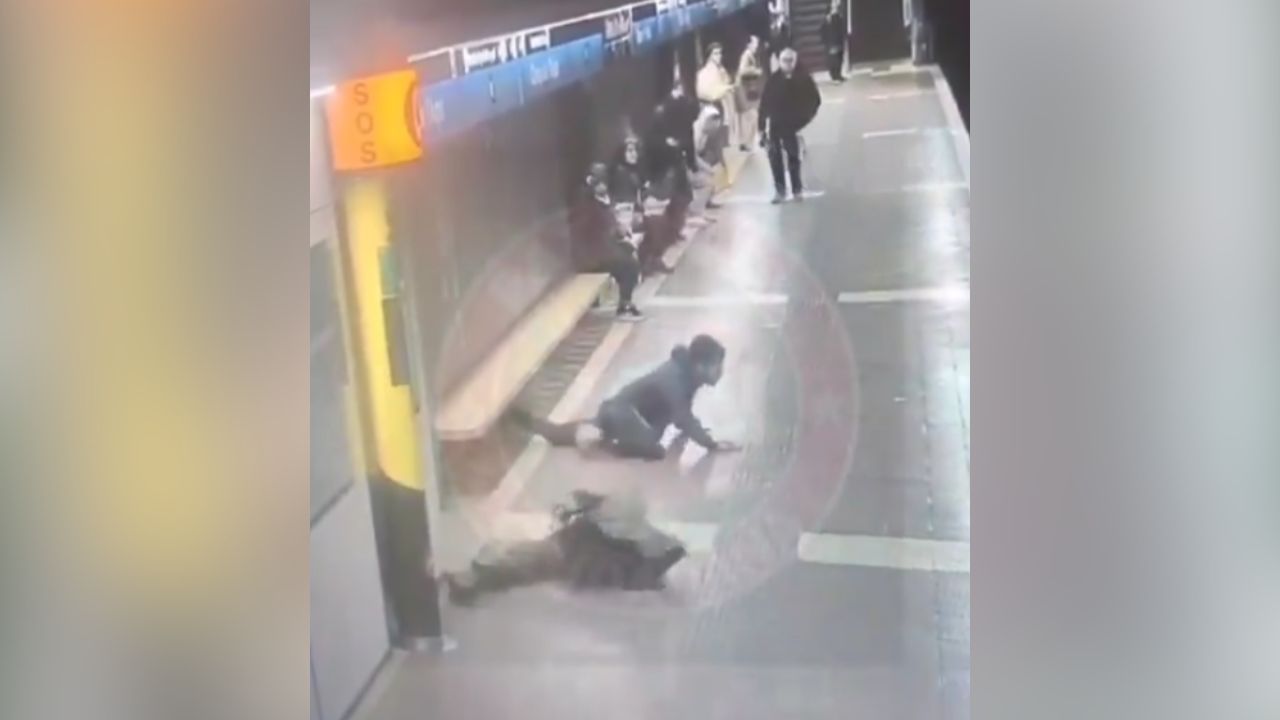 Las cámaras de seguridad registraron a un hombre joven caminando por la estación, golpeando sin razón aparente a varias mujeres que aguardaban el tren.