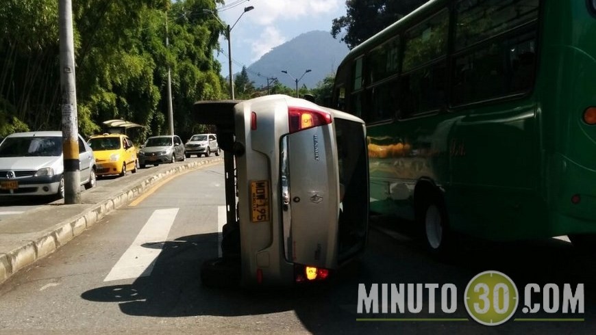 Minuto30.com-. Solo problemas en la movilidad ocasionó el volcamiento de un carro en la calle 10 A con la carrera 34, cerca al centro comercial Vizcaya.