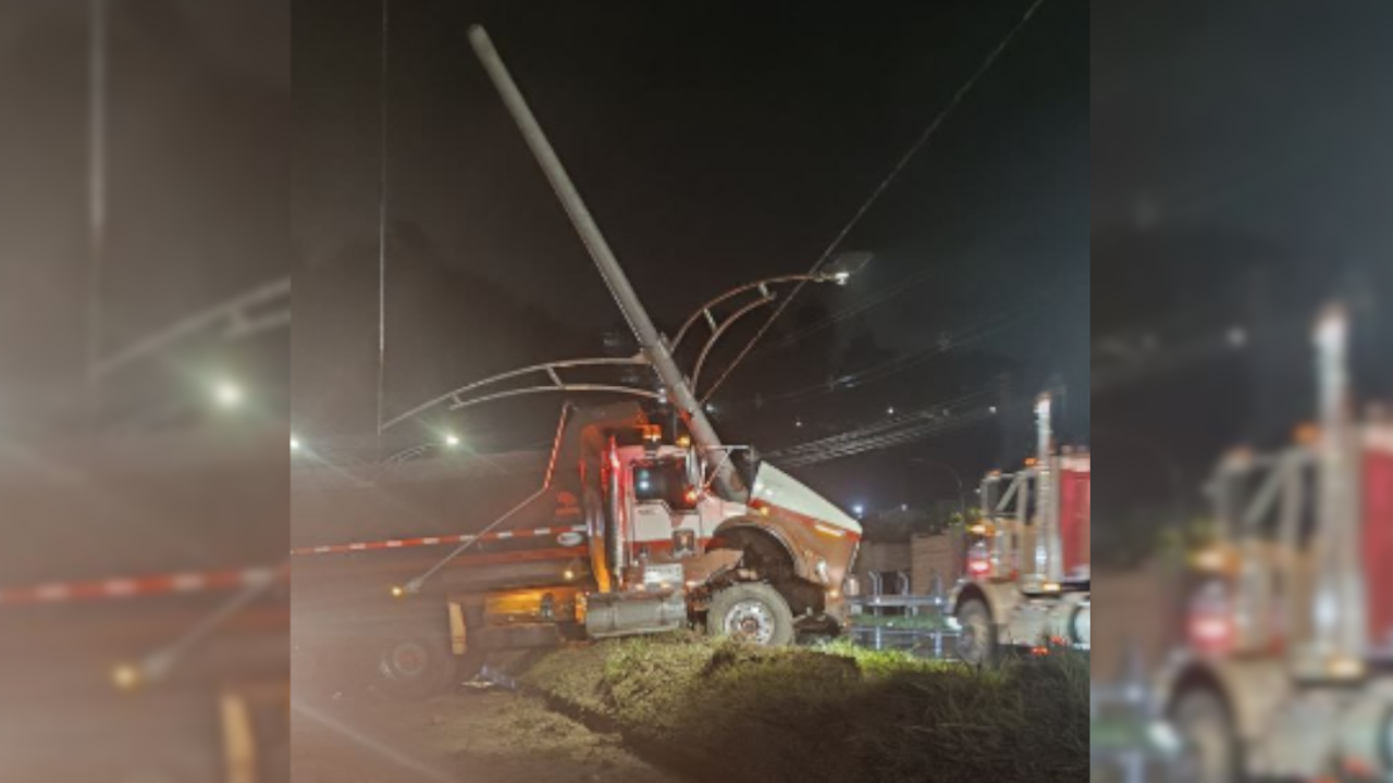 La volqueta terminó chocando contra un poste, que luego colisionó contra otro.