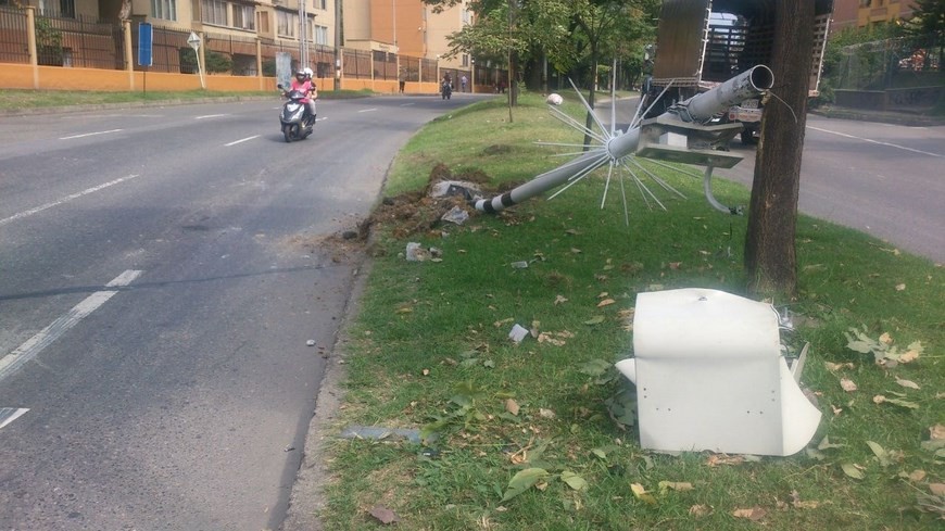 Minuto30.com-. Contra una cámara de fotodetección colisionó una volqueta en la avenida 80. El hecho no dejó personas lesionadas, solo daños materiales.