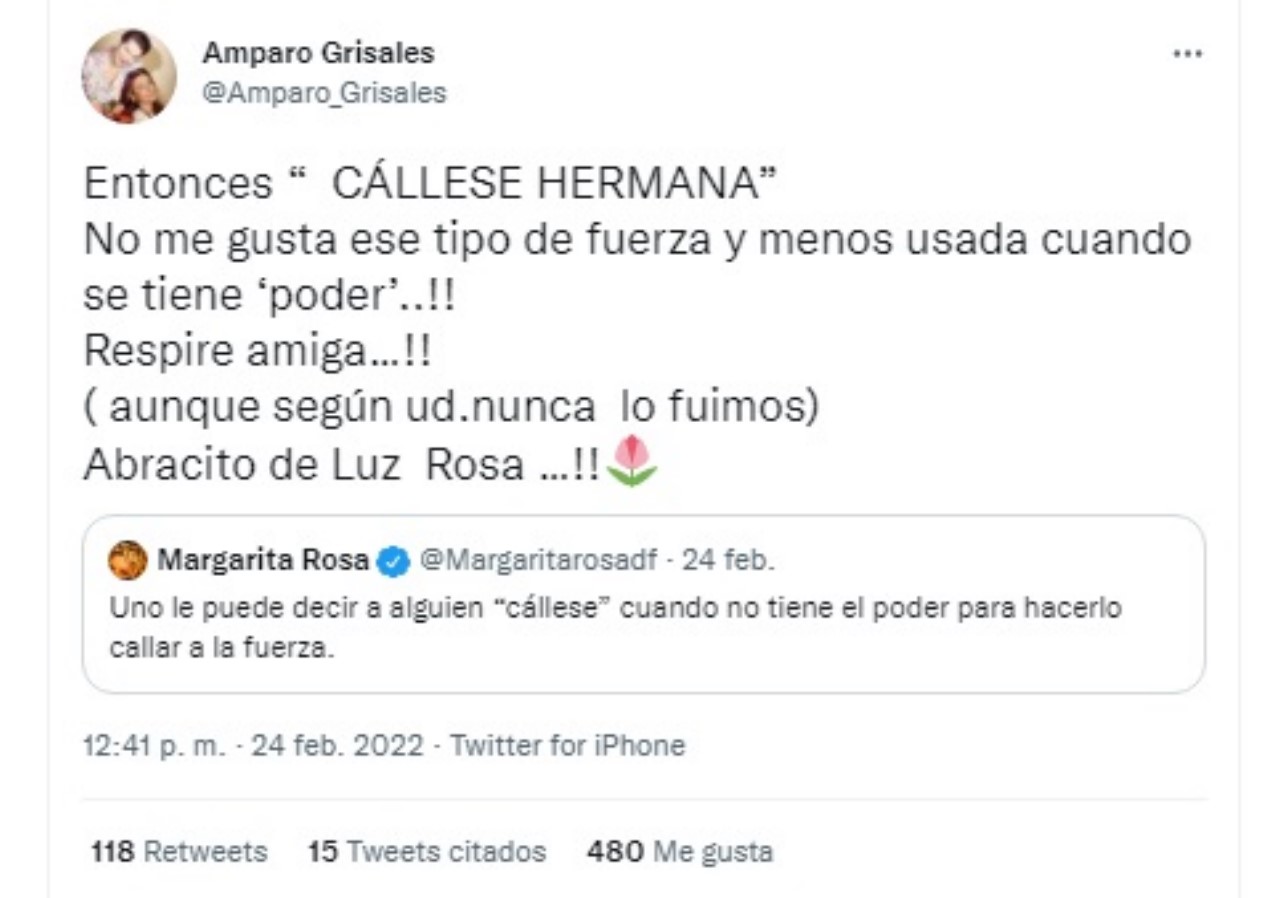 A través de sus cuenta de Twitter, la actriz Margarita Rosa de Francisco hizo un trino al que Amparo Grisales no dudo en responder.