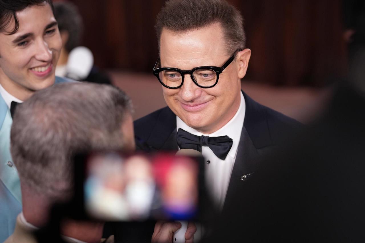 Brendan Fraser, que parte como favorito para alzarse con la estatuilla a mejor actor, también se ha ajustado al protocolo con un elegante esmoquin azul noche y broche de brillantes en la solapa.