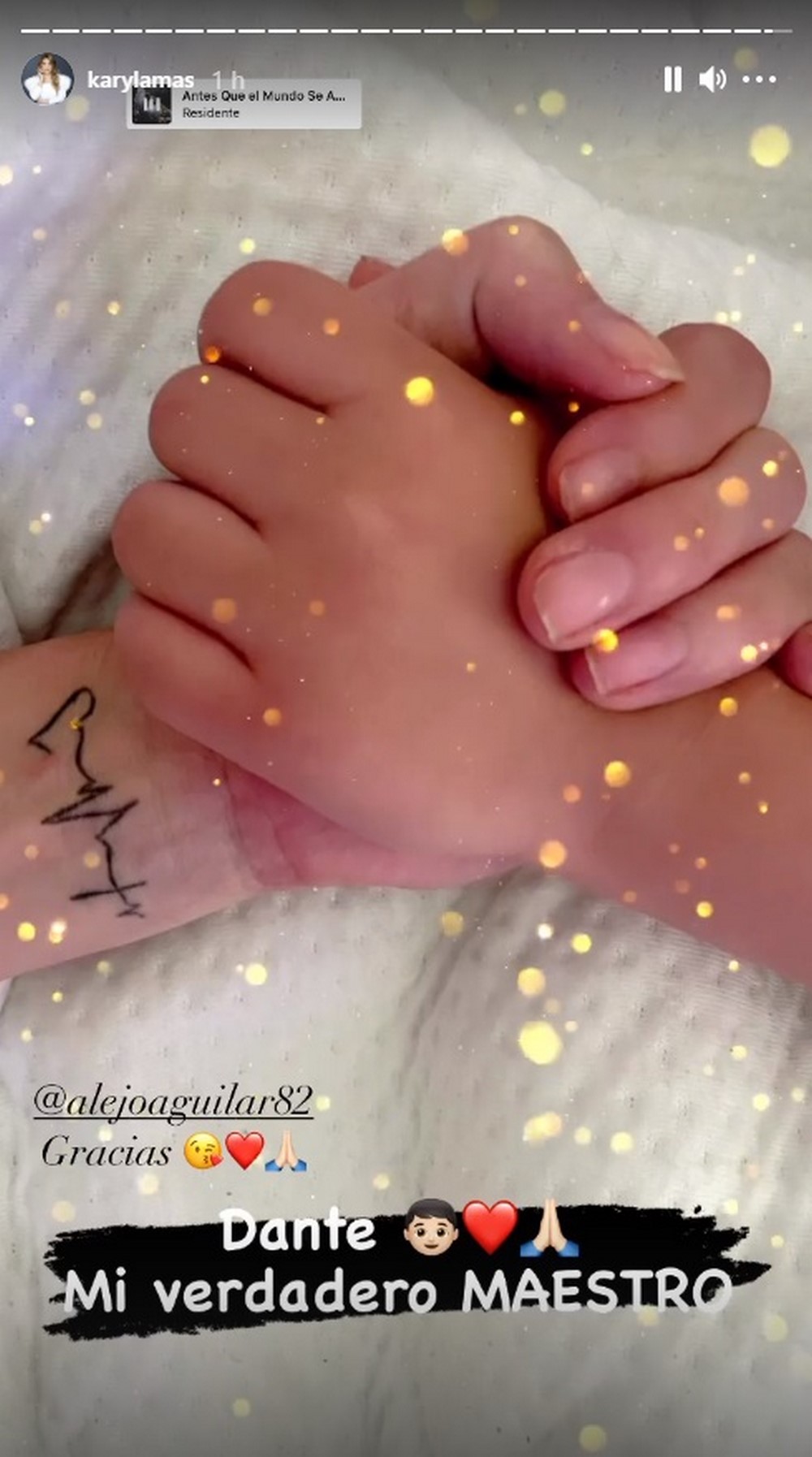 La presentadora Ana Karina Soto publicó una fotografía en sus estados de Instagram donde sale sosteniendo la mano del que sería su hijo Dante. Recordemos que su esposo el actor Alejandro Aguilar confirmó hace poco a días, en una entrevista virtual, que su hijo Dante y su esposa resultaron positivos para covid-19.