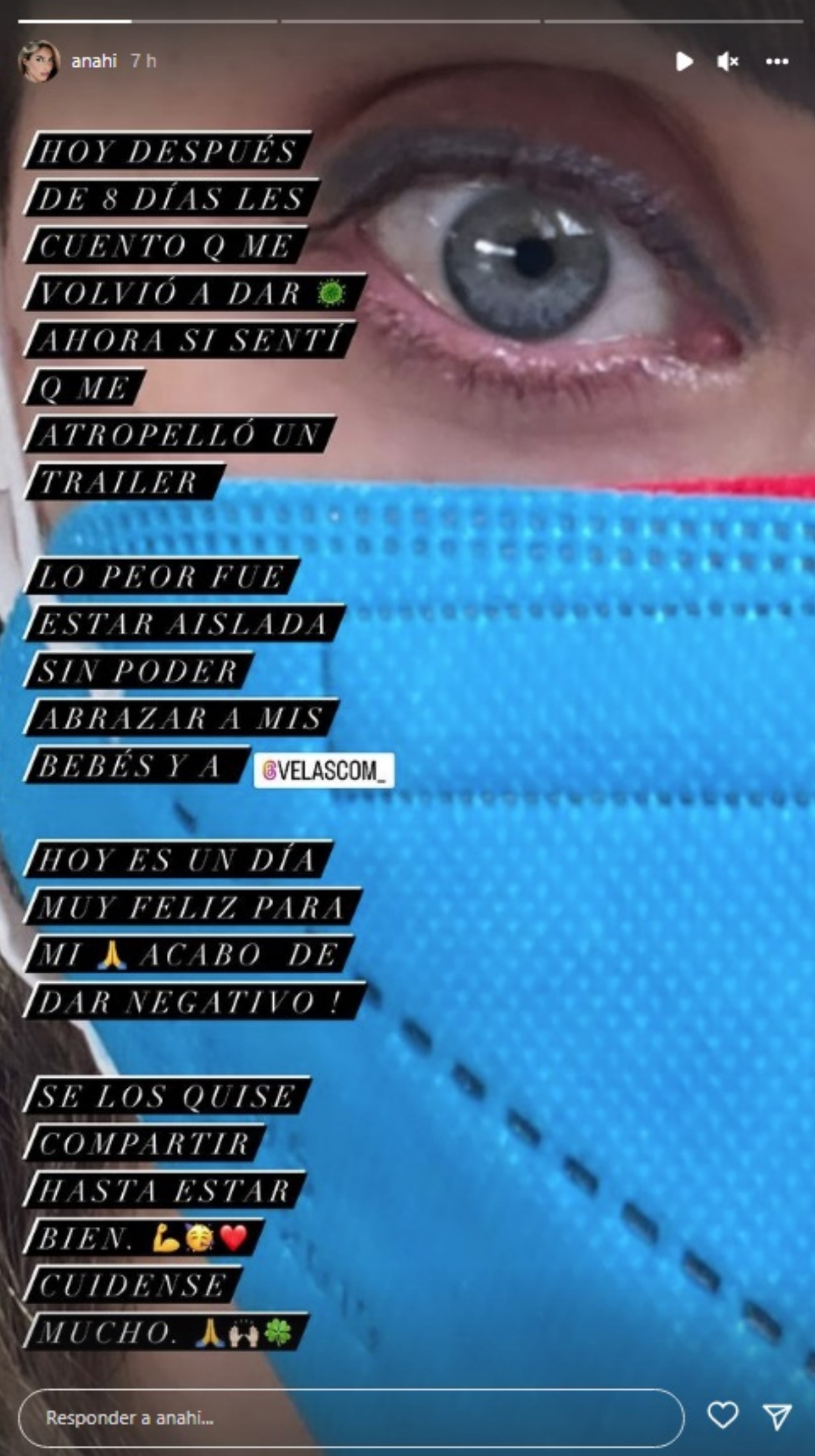 “Hoy después de 8 días les cuento que me volvió a dar Covid. Ahora si sentí que me atropelló un trailer”, escribió Anahí en una de sus historias de Instagram.