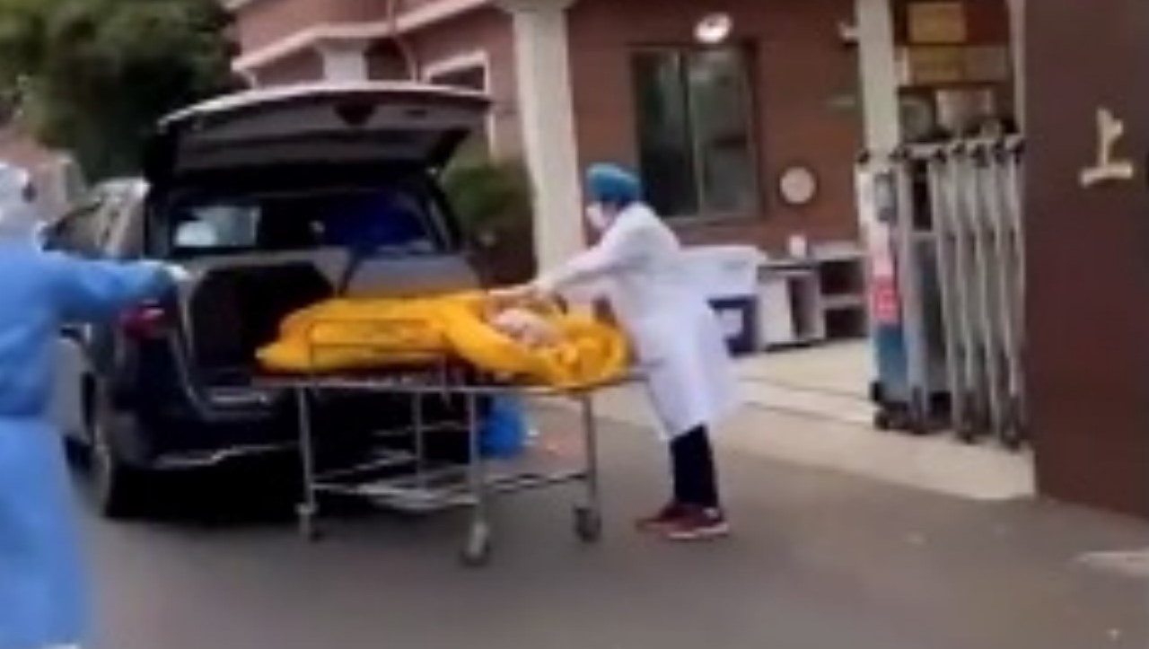 This is the video everyone's talking about today, showing how a Shanghai nursing home resident is taken away to the morgue in a body bag. At around 38 sec in the video, the staff member backs away and says: "He's alive. He's alive, I saw it. Don't cover him anymore." pic.twitter.com/Y3HzRRpxUl