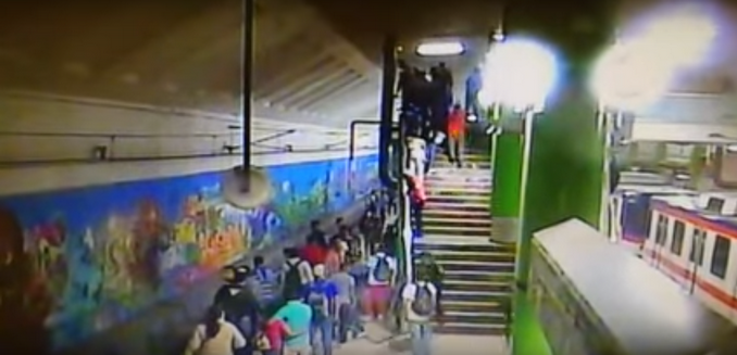 El hecho ocurrió el pasado domingo 15 de abril en la ciudad de Monterrey, México, cuando un anciano de 62 años de edad perdió el equilibro al momento de bajar las escaleras de la estación de trenes de Cuauhtémoc.