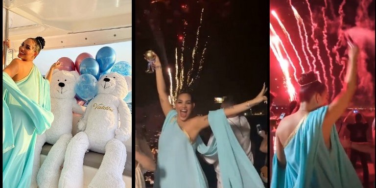 Para dar a conocer el sexo de su bebé, la bailarina barranquillera Andrea Valdiri hizo tremenda fiesta en un yate con sus seres queridos, en la noche el bote fue iluminado por fuegos artificiales. A través de sus historias, la bailarina mostró la ostentosa fiesta donde dio a conocer la noticia.